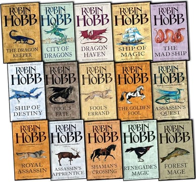 - „Die Zauberschiffe-Trilogie“ („The Liveship Traders Trilogy“). Die Geschichte spielt auf einem lebenden Schiff, das von Seehändlern aus der Familie Vestrit bewohnt wird.