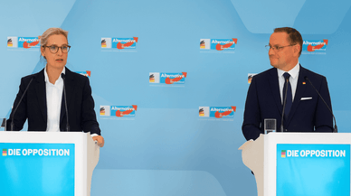 Sie wurde 2013 als anti-europäische Kraft gegründet und belegte 2025 den zweiten Platz (20,8 %). Sie positioniert sich als Verteidigerin nationaler Interessen: strenge Grenzkontrollen, Begrenzung der Migration, Austritt aus der EU. Viele ihrer Mitglieder werden wegen Verbindungen zu rechtsextremen Parteien in Deutschland und wegen Rassismus angeklagt. Im Jahr 2024 begann das Bundesamt für Verfassungsschutz (BfV) mit der Beobachtung eines Teils der Partei als potenziell extremistisch.