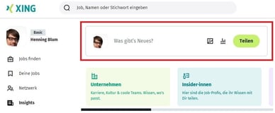 Sie können mitteilen, was Sie in Ihrem Job oder Kurs gelernt haben, Überlegungen zu Ihrer Branche oder Position anstellen oder Fotos von besuchten Veranstaltungen posten. Das müssen keine langen Beiträge sein – bei XING können die Meldungen nur 1000 Zeichen lang sein.