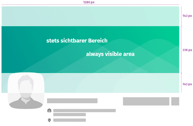 Premium XING-Nutzer können auch ein Titelbild hochladen. Am besten ist es, wenn dieses Foto 1280 × 624 Pixel groß ist. Beachten Sie aber, dass der direkt sichtbare Bereich des Titelbildes 1280 × 338 Pixel betragen wird. Dies ist besonders wichtig, wenn Sie Text auf Ihrem Titelbild haben: Bei falscher Größe oder bei falschem Zuschnitt wird er unlesbar.