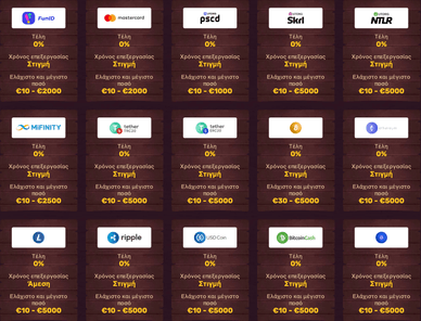 Συστήματα πληρωμών | funid, mastercard, binance pay, mifinity, visa, mastercard, bank transfer, tether sol, tether sol, tether trc20, bitcoin, litecoin, usd coin, bnb, dogecoin, shib, bep20, tron |