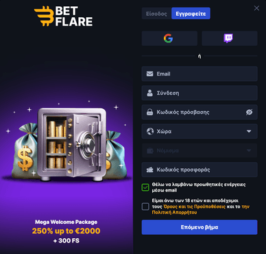 Εγγραφή και είσοδος στο online καζίνο Betflare