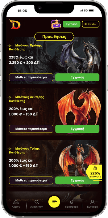 Το μπόνους καλωσορίσματος του DragonSlots, είναι συνδεδεμένο με τις 4 πρώτες καταθέσεις που θα κάνετε μετά την εγγραφή σας. Η ελάχιστη κατάθεση για να πάρετε το μπόνους, είναι στα €20.