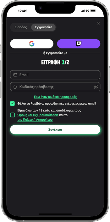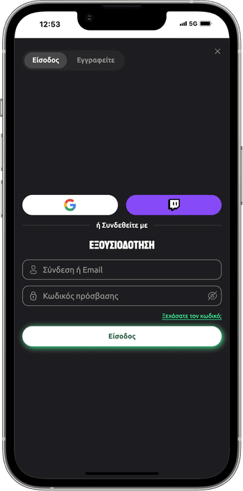 Εναλλακτικά, μπορείτε να επιλέξετε το κουμπί της Google ή του Twitch, και να συνδεθείτε χρησιμοποιώντας τους λογαριασμούς σας σε εκείνες τις πλατφόρμες.