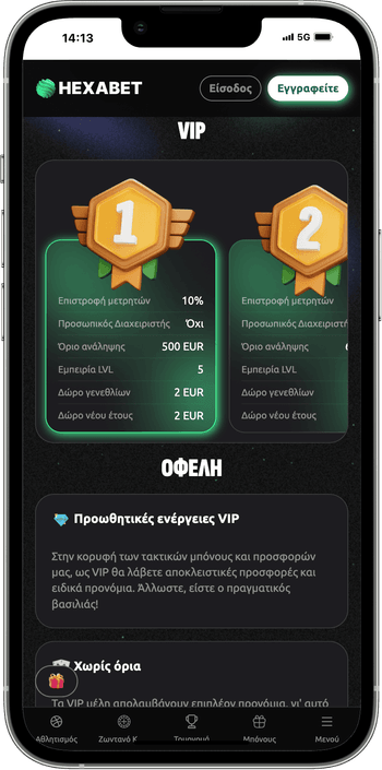 Η επίσημη ιστοσελίδα του καζίνο βρίσκεται στη διεύθυνση hexabet.com. Πρόκειται για μια πολύ καλά οργανωμένη σελίδα, με επαγγελματικό ύφος και απλότητα. Περιλαμβάνει όλες τις απαραίτητες κατηγορίες για το παιχνίδι σας, όπως «Καζίνο», «Αθλητικά», «Τουρνουά», «Προσφορές» και όλα όσα χρειάζεστε για να πλοηγηθείτε με ευκολία και ταχύτητα.