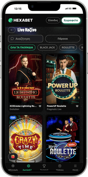 Η κατηγορία του live καζίνο είναι ιδιαίτερα δημοφιλής και συναρπαστική. Στο πλαίσιο της κατηγορίας αυτής, που είναι ό,τι καλύτερο για τους λάτρεις των συγκινήσεων, οι παίκτες συνδέονται ζωντανά με πραγματικούς κρουπιέρηδες, που σε πραγματικό χρόνο διευθύνουν αγαπημένα παιχνίδια, σαν το πόκερ, τη ρουλέτα, το μπλάκτζακ, το μπακαρά, διάφορα τηλεπαιχνίδια και άλλα.