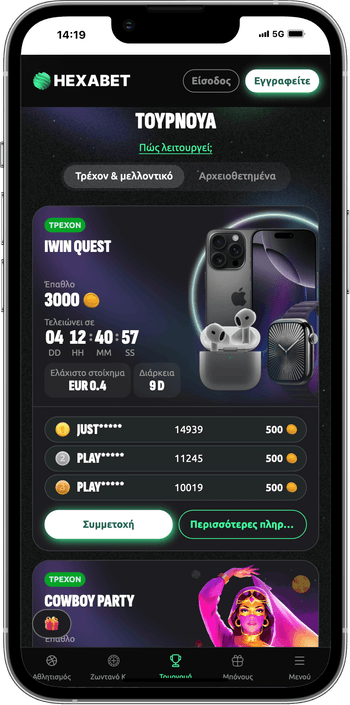 Στο Hexabet online casino, θα βρείτε σε ισχύ τα παρακάτω τουρνουά: