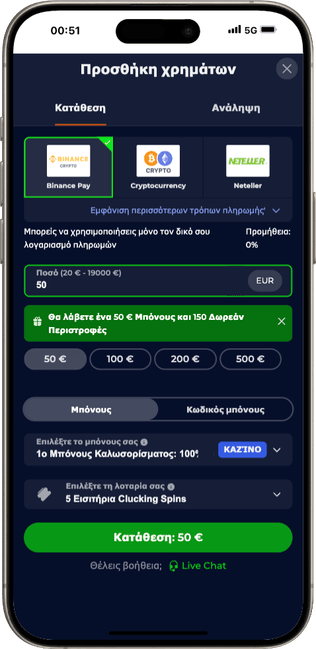 💰 Συστήματα πληρωμών | Visa, Mastercard, Skrill, Neteller, PaysafeCard, Revolut, eZeeWallet, Jeton, Κρυπτονομίσματα |