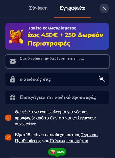 🎰 Πακέτο καλωσορίσματος | €450 + 250 Δωρεάν Περιστροφές |