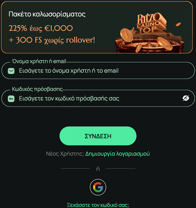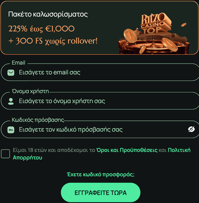 Ritzo καζίνο Μπόνους καλωσορίσματος