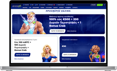 - 100% εώς €500 + 200 Δωρεάν Περιστροφές + 1 Bonus Crab