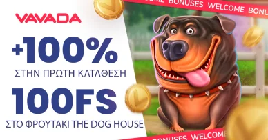 🎁 Μπόνους καλωσορίσματος | 100 FS στο παιχνίδι The Dog House 100% μπόνους στην πρώτη κατάθεση |
