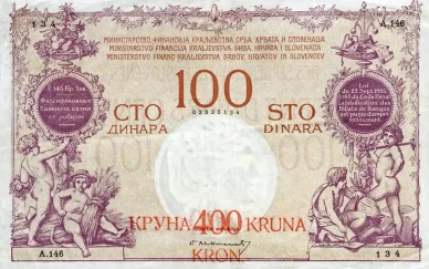 Το 1918, ένα νέο κράτος εμφανίστηκε στον παγκόσμιο χάρτη με το όνομα Βασίλειο των Σέρβων, Κροατών και Σλοβένων. Δύο χρόνια αργότερα, εισήγαγε το επίσημο νόμισμά του, το γιουγκοσλαβικό δηνάριο. Δεν επρόκειτο για κέρματα, αλλά για χαρτονομίσματα με ονομαστικές αξίες 10, 100 και 1.000 δηναρίων. Κυκλοφορούσαν επίσης γιουγκοσλαβικές κορώνες που δημιουργήθηκαν με βάση τα αυστριακά χαρτονομίσματα.