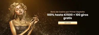 En Goldspin bonos de bienvenida, podrás ver un generoso pack para los usuarios que usan este bonus registro. Para comenzar, tendrás el bono de primer depósito de 100% hasta 1500 €, además de 100 giros gratis. La cantidad mínima para depositar es de 10 € y para liberar las ganancias con esta bonificación debes apostar un número de 35 veces la cantidad inicial del depósito.
