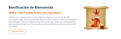 Bono de bienvenida hasta 1850 € y 500 tiradas gratis