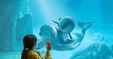 Las principales atracciones incluyen el delfinario, el túnel submarino y los hábitats de los tiburones.
