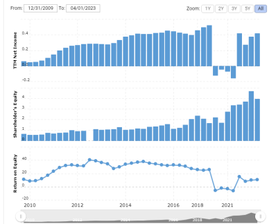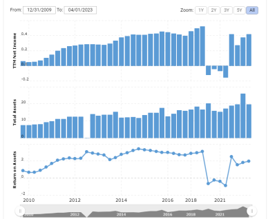 Veamos cómo ha cambiado el ROA desde 2009 hasta 2023, la dinámica se muestra en la captura de pantalla siguiente.