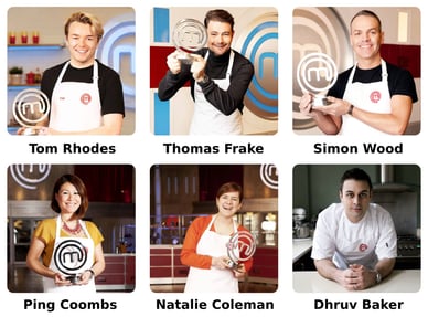 Dhruv Baker (2010 winner) – born in Mexico and raised in India. After winning the show, he worked with Michel Roux Jr at Le Gavroche and De Librije in Holland.