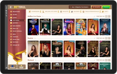 La plateforme en ligne permet également de jouer à certains jeux en direct. Là encore, le casino BetHall peut se targuer d'un riche portefeuille. La section en direct a été adaptée aussi bien aux joueurs débutants qu'aux joueurs avancés, de sorte que tout le monde peut profiter de l'offre disponible.