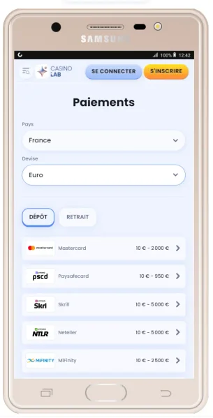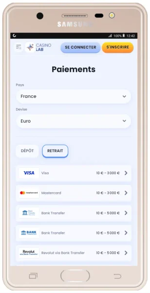 La procédure de retrait au CasinoLab Casino FR est donc très facile. Souvenez-vous des limites en place, qui varient selon la méthode de paiement choisie. Le montant minimum pouvant être retiré est de 10 EUR.