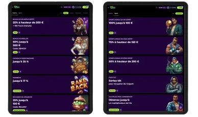 - Bonus Highroller - 50 % jusqu’à 500 € (Code : 50high) : Réservé aux joueurs qui aiment miser gros sur internet, ce bonus s’active avec le code 50high à partir d’un dépôt minimum de 300 €. Il est valable pendant 3 jours et est soumis à une exigence de mise de x35 avant tout retrait.