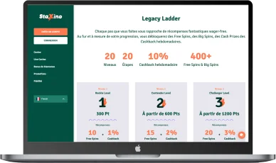 Le programme de fidélité de cette plateforme est sans aucun doute l’un des meilleurs et l’un des plus complets que j’aie eu l'occasion d'analyser jusqu’à ce jour. Plus vous dépensez sur le site, plus votre niveau de fidélité augmente proportionnellement aux avantages et Staxino bonus qui y sont liés aussi. Les avantages du VIP de ce site français de jeux en ligne incluent des free spins, des big spins, des prix en cash et surtout des cashback hebdomadaires pour amortir les pertes. Le programme se décline en 20 niveaux mais voici un tableau récapitulatif des avantages de 5 premiers :
