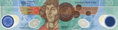 Il existe quatre coupures de billets commémoratifs : 10, 20, 50 et 19 zlotych. Le billet de 20 zlotych comporte huit modifications qui diffèrent complètement les unes des autres :