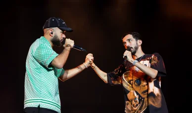 Bigflo (Florian Ordoñez) se tient à gauche, Oli (Olivio Ordoñez) est à droite.