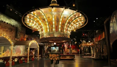 L’autre grande création rattachée au musée des Arts Forains à Paris est le Théâtre du Merveilleux, dont la visite est d’ailleurs bien plus qu’une visite : c’est une immersion complète dans un lieu de vie (ou plus exactement : de fête) du début du XXe siècle, à la fois recréé et magnifié par les technologies modernes. C’est donc davantage une mise en scène qu’un musée.