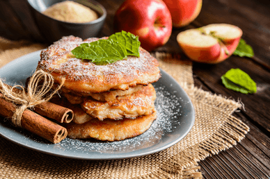 Hozzávalók | alma, tojás, finomliszt, tej, vaj, cukor, só, növényi olaj, fahéj, porcukor |