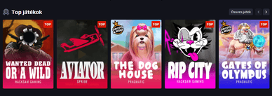 💻 Szoftverfejlesztők | Pragmatic Play, Yggdrasil, Spribe, HacksawGaming, Platipus, NetEnt, Red Tiger, Habanero, Spinmatic, Endorphina, Tom Horn, GameArt, 1x2 Network, Triplecherry, Mobilots stb. |