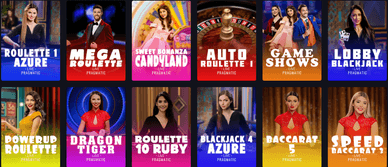 A kínálat rendkívül változatos: a klasszikus játékok (blackjack, baccarat, rulett) mellett izgalmas műsorjellegű játékok is helyet kaptak, mint például a Crazy Time, a Mega Wheel vagy a Deal or No Deal Live. A különféle játékasztalok különböző tétlimitekkel érhetők el, így mindenki megtalálhatja a pénztárcájának és játékstílusának megfelelőt – legyen Ön kezdő vagy gyakorlott játékos.