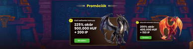 Első befizetési bónusz | 225%-os bónusz akár 900 000 HUF-ig és 200 ingyenes pörgetés |