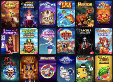 Ráadásul sportfogadáshoz és lóversenyhez is. Betsoft, Big Time Gaming, Endorphina, Hacksaw Gaming, Iron Dog, Mascot, NetEnt, Nolimit City, Pragmatic Play és más népszerű játékfejlesztők vannak bemutatva az adott kaszinóban. A játékválaszték a következő játékkategóriákat tartalmazza: nyerőgépek, bónusz vásárlás játékok, asztali játékok, élő kaszinó játékok, exkluzív játékok, jackpotos játékok.
