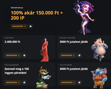 Üdvözlő kaszinó bónusz | 100%-os bónusz Akár 150.000 ft-ig, 200 ingyenes pörgetés |