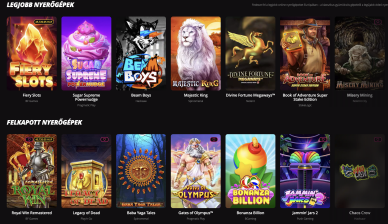 Szoftverfejlesztők | NetEnt, Nolimit City, Play'n GO, Merkur, Blueprint Gaming, Evolution Gaming, Pragmatic Play, Thunderkick, Red Tiger Gaming, Big Time Gaming, Playson, Ezugi, Push Gaming, Eyecon, BGaming, Wazdan, Red Rake Gaming, Spinomenal, Leander Games, 1X2 Gaming, Booming Games, Iron Dog Studio, Relax Gaming, Betgames stb. |
