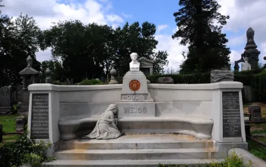 - Houdini sírja, Machpelah Temető, Queens, NY - Rajongók és csodálók gyakran látogatják és virágokat, bilincseket helyeznek a síremlékre.