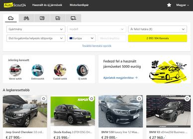 Az AutoScout24.hu az egyik vezető nemzetközi autóértékesítési platform, amely a felhasználók számára autók széles választékát kínálja egész Európából. A felhasználóbarát felületnek és a különböző keresési szűrőknek köszönhetően könnyedén találhat autókat különböző szempontok szerint: márka, modell, ár, gyártási év és egyéb jellemzők alapján. Itt nemcsak használt autó, hanem vadonatúj vásárlására is van lehetősége.