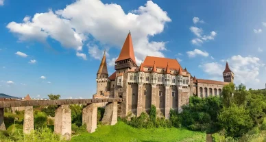 Vajdahunya területén található, a mai Románia területén, ami egykor Magyarország része volt. Ez a Hunyadi-család legismertebb rezidenciája. A várat Hunyadi János építtette, később fia, Mátyás király gótikus stílusban átépíttette. Egy monumentális erődítmény a híres “hollós” szimbólummal.