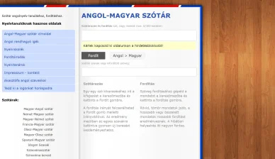 Sztaki.hu | Egy szótár, amely hozzáférést biztosít a különböző nyelvek szavainak fordításaihoz. Nem csak a gyakori szavakat, hanem a specifikusabb terminológiát is lefordítja. A funkciók között a felhasználó nem csak a keresést használhatja, hanem közösségekhez és szótárakhoz is csatlakozhat, sőt, saját szótárat is létrehozhat, amely hasznos lehet más felhasználók számára. | A szótáron kívül az oldal hozzáférést kínál könyvtárak és archívumok böngészéséhez, illetve a szöveg plágiumellenőrzéséhez is. | |