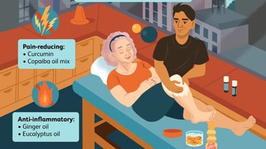 In one study, members of one group received a hand massage with copaiba oil (which is derived from copaiba trees, found in Brazil) combined with a product that contained wintergreen, camphor, and peppermint. Members of the other group were massaged with coconut oil.