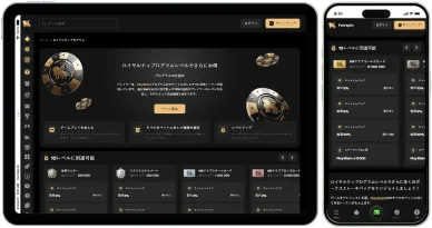 フェアスピンのオンライン公式サイトは見た目も使いやすさもベストクオリティ!PCはもちろん、スマホやタブレットでも快適にプレイできます!全体はダークトーン×ゴールドでまとめられており、高級感のあるデザインが印象的。ギャンブルが初めての人でも迷わず操作できるよう、シンプルで直感的なレイアウトが採用されています。