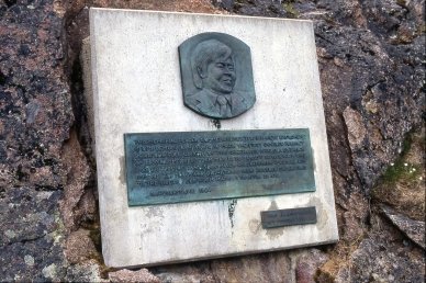 植村峰に最も近い村ナルサスワックにグリーンランドを領有するデンマーク政府によって設置された植村直己を顕彰するレリーフ