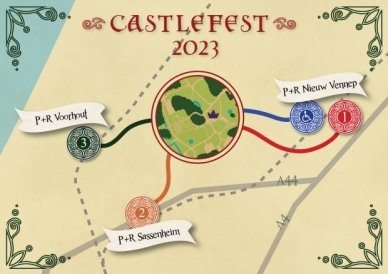 Je kunt een bus nemen naar Castlefest. Buskaartjes worden verkocht bij de ticketshop. Het pendelbus ticket is geldig voor een retourtje voor één persoon.