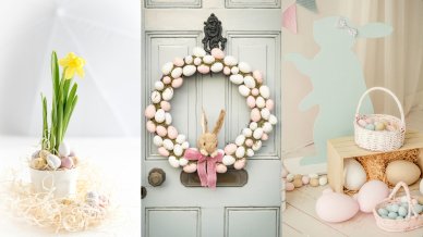 Om je huis te versieren in overeenstemming met het thema van de vakantie, kun je slingers gebruiken in de vorm van konijnen en eieren. Het maken kan heel leuk zijn als je het met het hele gezin doet. Alles wat je nodig hebt is een schaar en gekleurd papier.