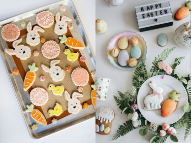 Als je het idee voortzet met de symbolen van de feestdag, in het bijzonder met een konijn, is het eenvoudigste, maar daarom niet minder creatieve idee om een uniek deksel voor een taart of ander gerecht te maken. Om dit te doen, neem je gewoon een mengkom (een grote en diepe kom) en lijm je op de buitenkant van de bodem een figuur in de vorm van een konijn en bedek je alles met gespecialiseerde verf en het meesterwerk is klaar.