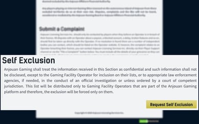 Bij casino's met Anjoun licentie maken spelers gebruik van de mogelijkheid om zelfuitsluiting aan te vragen. Dit is nodig om de toegang tot gokken tijdelijk of permanent te beperken.