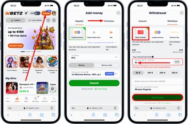 Het is eenvoudig om je account te financieren op een gok platform met interbancaire transacties. Voor bankoverschrijving casino hoef je maar een paar eenvoudige stappen te volgen. Laten we het voorbeeld van WBetz casino bekijken: