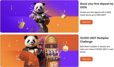 - Royale bonussen. Nieuwe spelers van het platform ontvangen een stevige prijs van maximaal 1.500 USDT. Voor vaste klanten worden unieke aanbiedingen gecreëerd op basis van de analyse van inzetten en vaak geopende spellen.