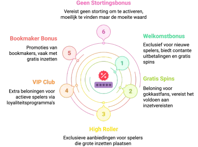 De lijst met bonusaanbiedingen verschilt van bedrijf tot bedrijf. Sommige aanbieders bieden standaard beloningen - voor een storting of registratie. De aandacht van spelers wordt echter getrokken door bonuscodes. Als je de combinatie gebruikt, krijg je toegang tot een verhoogde uitbetaling, een verhoogd aantal spins of die zeldzame bonus zonder storting.